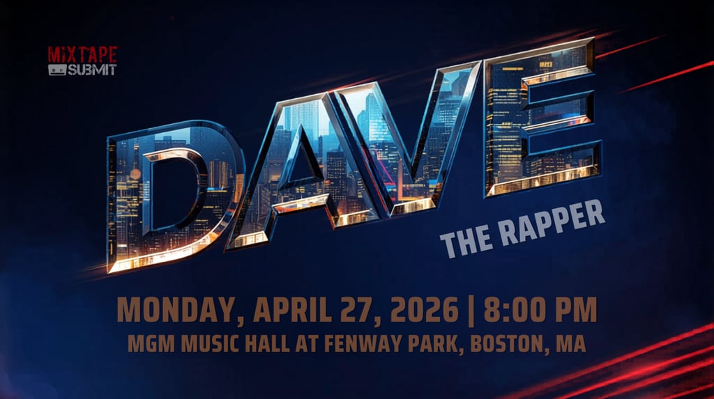 Dave the Rapper Fans can now secure their tickets for his highly anticipated event at Mixtape Submit.com. **Event Details:** - Artist: Dave - Rapper - Date & Time: Monday, April 27, 2026, at 8:00 PM - Venue: MGM Music Hall at Fenway Park - Location: Boston, MA Don’t miss your chance to experience an unforgettable night of music and energy. Be sure to purchase your tickets early!